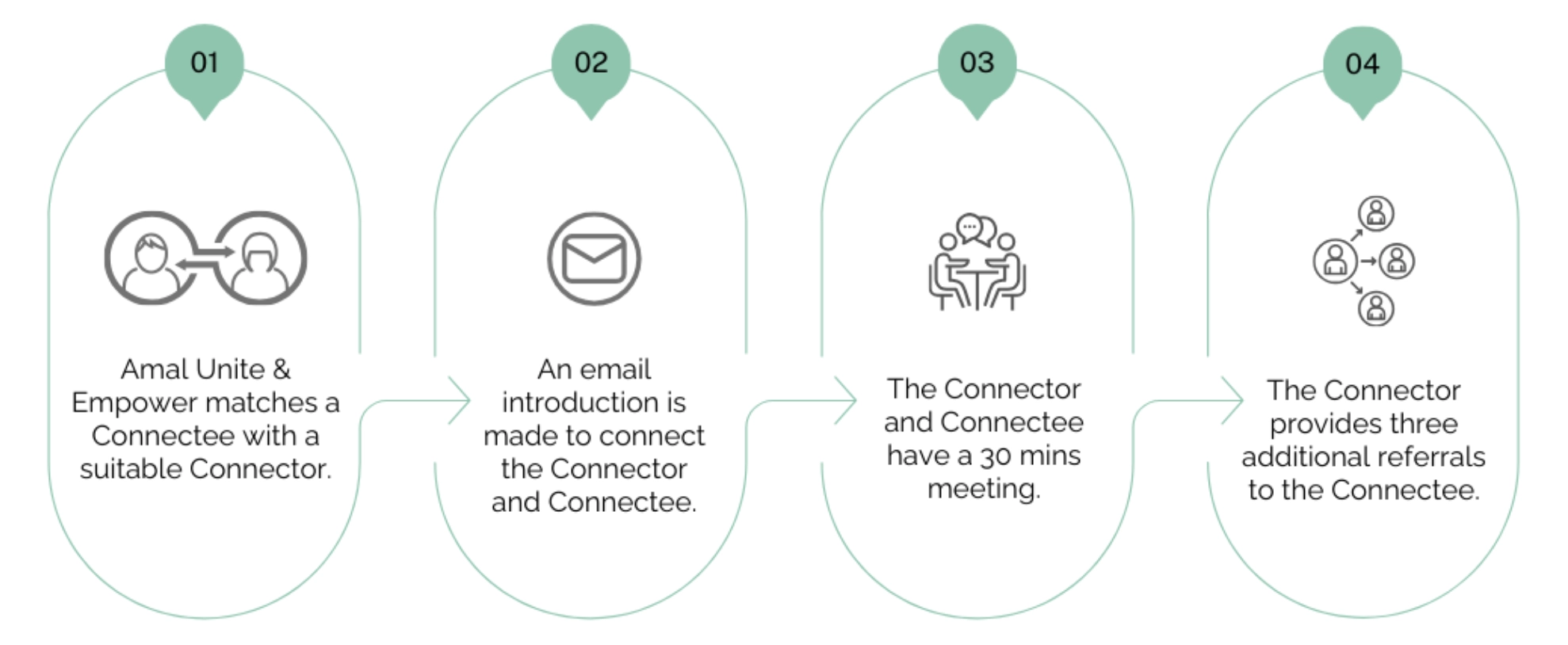 Just 30 minutes for the initial meeting, followed by a few quick email introductions and an optional follow-up chat a couple of weeks later. In total, being a Connector usually takes under 90 minutes per Connectee.