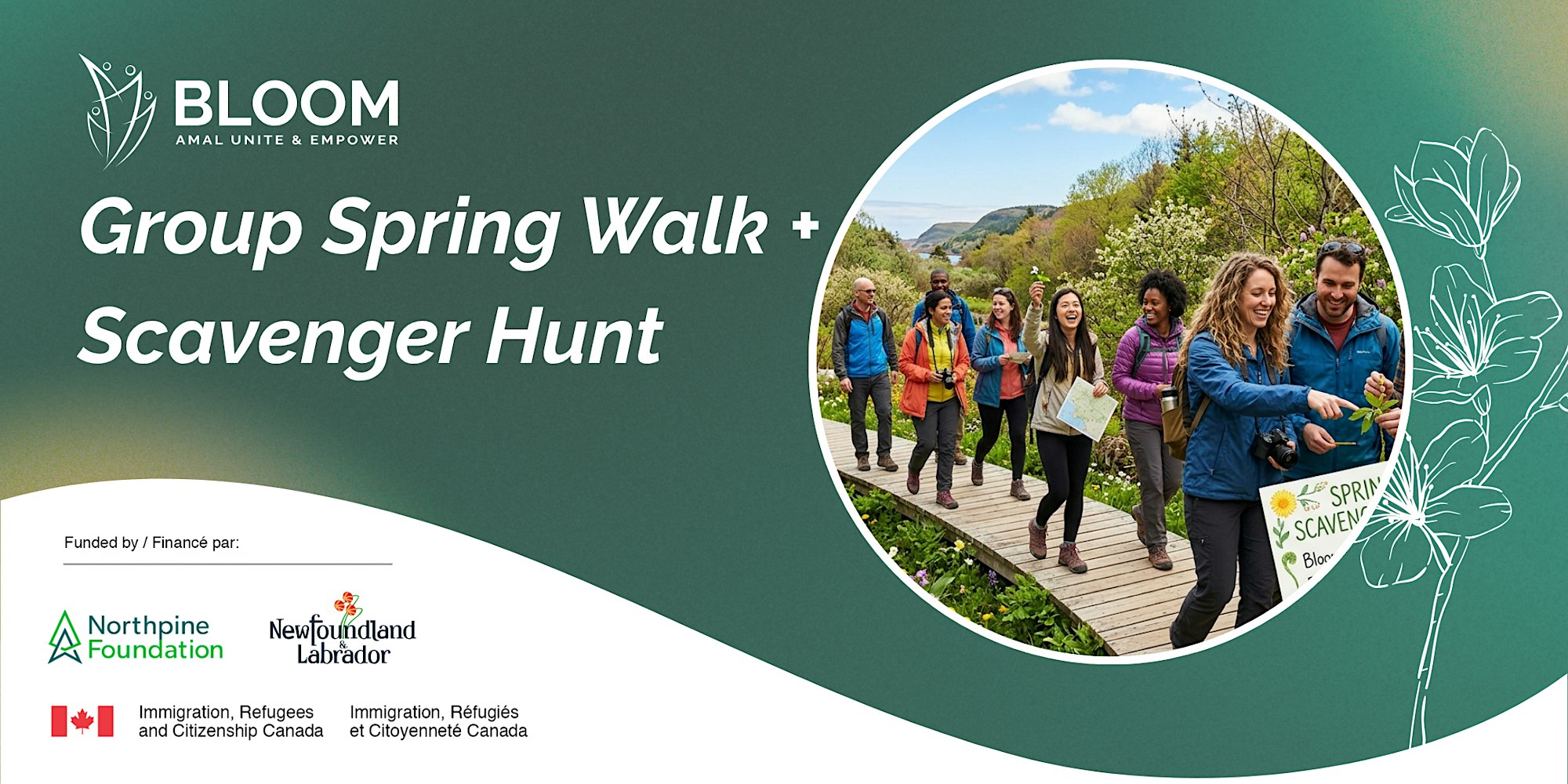 Join a spring walk at Bowring Park with fun photo scavenger hunt, scenic views, prizes, and cozy treats. Connect, explore and unwind outdoor🌿 Step into spring with us for a refreshing afternoon outdoors at beautiful Bowring Park. This guided group walk along the scenic South Brook Trail is the perfect way to unwind, connect, and enjoy nature—right in the heart of the city.As we explore the peaceful wooded trail and take in views of the river and surrounding valley, you’ll have the chance to participate in a fun nature photo scavenger hunt. Capture the beauty of spring, discover hidden details along the trail, and you might even win a prize!📅 Event DetailsDate: Saturday, May 9Time: 2:00 – 4:00 PM (Meet at 1:45 PM)Location: Main Entrance by Duck Pond, Bowring Park (305 Waterford Bridge Rd)Trail Length: 3 km (Easy, beginner-friendly)This isn’t just a walk—it’s an opportunity to:Recharge mentally and physically in a calming, natural settingMeet new people and build meaningful connectionsBoost your mood, creativity, and overall well-beingEnjoy a relaxed, welcoming space for community engagementWe’ll wrap up with hot chocolate, tea, and treats to keep things cozy and social ☕🎒 What to BringNewfoundland weather likes to keep us guessing—so come prepared!Comfortable walking shoesWarm layers - jacket, hat, mittens (just in case)Rain jacketReusable water bottleYour phone or camera for the scavenger hunt!,🌱 Why Join?Whether you're looking to get active, de-stress, or meet others in your community, this experience offers a low-pressure, fun way to do it all. It’s especially great if you’re new to the area or hoping to expand your network in a relaxed setting.Spots are limited—grab yours and come enjoy a little spring magic with us 🌼🔔 Important: One-Time Participant Form (Required)To help us continue offering free wellness activities to the community, we ask all participants to complete a short one-time information form.This is a requirement from our funders and helps us keep Bloom running at no cost to you. The information is confidential and used only for reporting and planning.👉 Please fill out the form before attending an activity:https://qx0bg.share.hsforms.com/2QkdtyUk1Rnq6VA5_MEBIZgIf the form isn’t completed in advance, you may not be able to participate—so thank you for taking a moment to support this important step.📸 Photography & Video Notice:Photos or videos may be taken during Bloom events to help promote our programming. By attending, you consent to this use. If you’d prefer not to be photographed, please let a staff member know when you arrive.Feel free to reach out to us at bloom@amalnl.ca for more information or any inquiries you may have. |